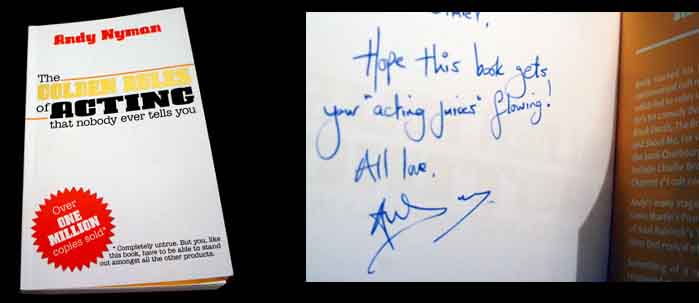 An image of actor Andy Nyman popped up on the projector screen. Richard explained that Andy Nyman is one of his favourite people – a hard worker he said. I agree. And it’s why I have a personally signed copy of The Golden Rules of Acting that nobody ever tells you book by Andy Nyman.