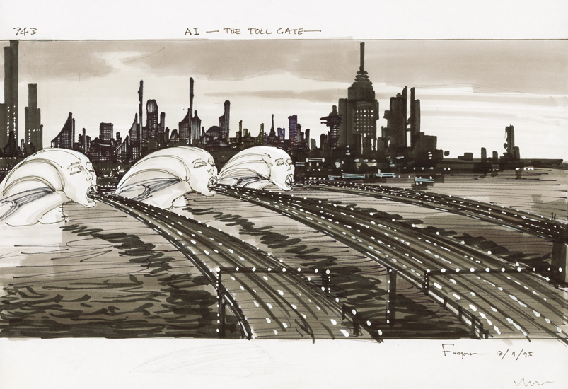 ‘David sadly passed away but the book that was produced was really quite nice and a copy fell into the hands of Stanley Kubrick. He liked something about the book, but never really made it clear what he actually liked. But he just wanted me to work with him on Artificial Intelligence, sketch and come up with ideas for the movie.’