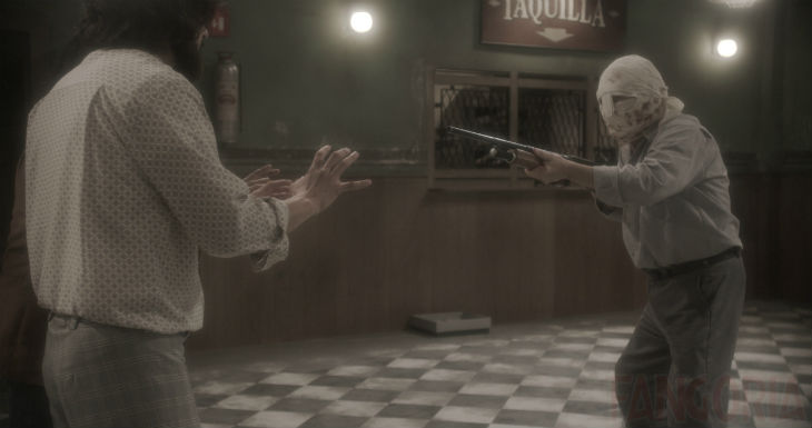 It’s a stormy night in Mexico City in 1968 and a man is stranded at a bus station trying to make it to his wife who’s in labour. Soon a pregnant woman arrives along with other strangers including a weird boy with an unknown medical condition. Suddenly weird events begin as the strangers begin to take on the same face as the first man at the bus stop. They start blaming him and outbreaks of paranoia and fear kick in as they all fight trying to decipher who the culprit is whilst kept hostage in the bus station.