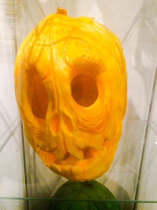“Solid art-wise, a cross between my Foetus-stein because he’s only four inches and kind of chunky but I love the texture of the skin as there’s all these lovely little creases. For my Pumpkin Ray masks, I did the same thing with the boils. I don’t like smooth skin because if a Pumpkin creature did exist, it wouldn’t have smooth skin, it’d be gnarly.”