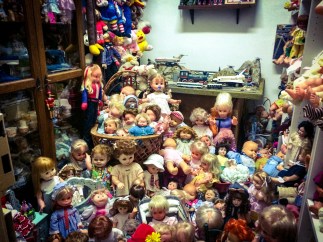 Melanie led me to a room packed wall to wall with towering shelves filled with all manner of dolls. She explained that these are the dolls waiting to be collected after being restored/fixed. Labels are tied delicately around their ankles, one has been awaiting collection since last year and Melanie says that there are quite a few dolls which have been waiting for their owners to reclaim them for years.
