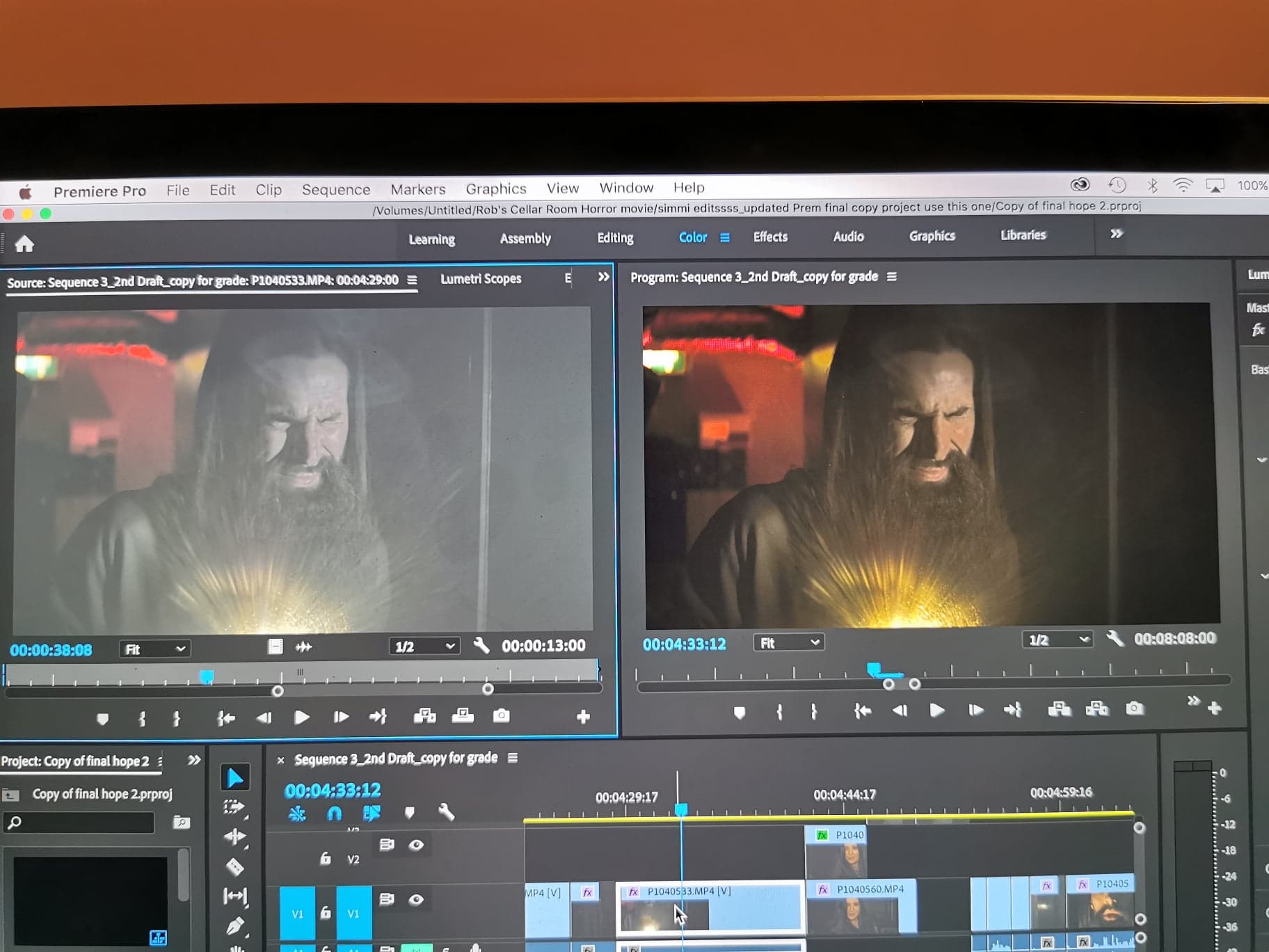 As I didn’t have a budget for a grade artist and dealing with 4K files would mean I’d have to find someone fairly local, handover a drive and then retrieve it, this would have been too difficult with our deadline breathing down our necks. Therefore, I had to do the grade myself. I am calling it the ‘temp grade,’ since I threw myself in the deep-end and learned how to do it on the go. Nonetheless, I hope to get an artist to do a re-grade soon.