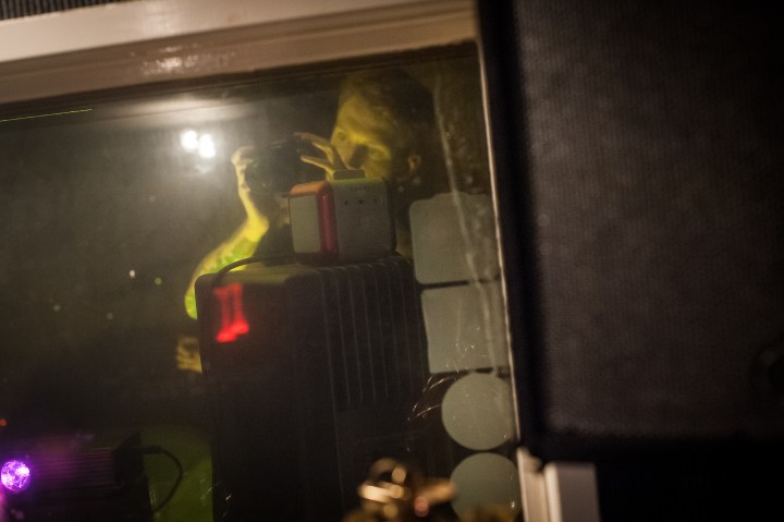 We blocked out the scene by timings reminiscent of silent cinema. I would count down and call out cues to all of the different choreographed elements like characters appearing, reappearing and flickering lights. Everyone knew their part and it made for a really hands on experience, but it took a lot of logical mapping out where our actions mattered within the space.