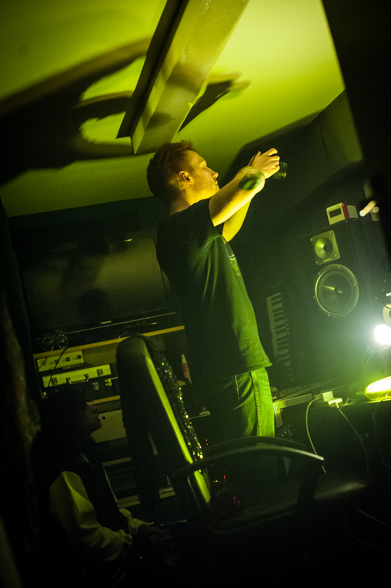 The Cellar Rooms is also said to be Haunted. Ventilation ambience can be heard at all times, humming constantly, like an underlying rumble trapped deep in the gut of the studio. When we smoked the corridors, using only small gelled LED’s and strobe lights, the feeling that something could come out of the shadows at any time was immense. As the fog settled into thinly spread haze diffusing the light, there was a sense that asides from us, we weren’t alone…Quite a few times I would be left alone in those corridors and I felt that some presence was there.