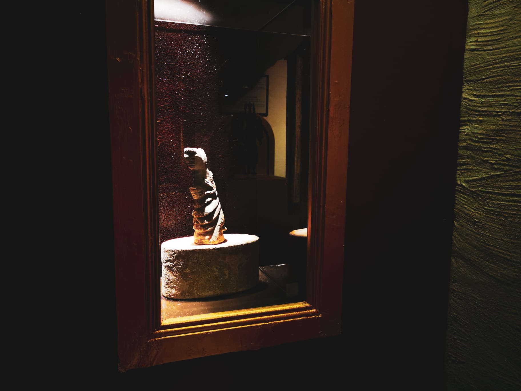 ‘Your turn,’ so I try, but I’m not very successful. The pedestal the bowl rests on moves slightly and he tells me ‘Gently, gently,’ and I try again but it doesn’t work. He then replies ‘Your not in harmony,’ to which I said ‘I told you!’ and then he tells me to try the bigger bowl inside later. Mr Mysterious leaves me at the altar and disappears, and I then realise that I’m on my own and begin my journey. In fact, I have a little leaflet I have to fill in as I go along and note my findings. I realise that I’m on a quest now.